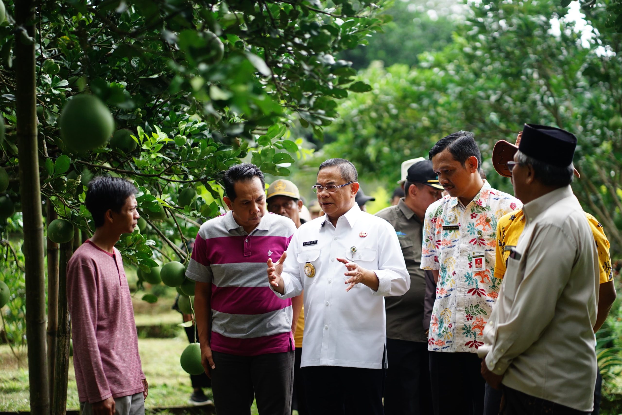 Kunjungan kemudian dilanjutkan ke Kebun Jeruk Pamelo yang menjadi salah satu ikon pertanian Kabupaten Pati. Menurut Sudewo, jeruk pamelo Pati memiliki kualitas rasa yang istimewa dan menjadi komoditas unggulan karena mampu berbuah sepanjang tahun.