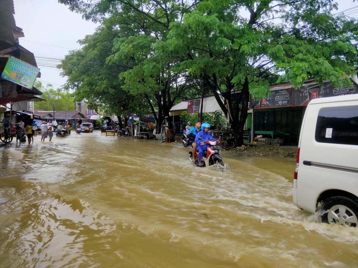 Ia menjelaskan, banjir terjadi akibat curah hujan yang tinggi disertai meluapnya debit air dari hulu ke hilir, sehingga air menggenangi jalan dan rumah warga. Kondisi tersebut berdampak pada lumpuhnya aktivitas ekonomi masyarakat, mengingat kawasan itu merupakan pusat kegiatan warga dengan keberadaan pasar, bengkel, dan sejumlah warung.