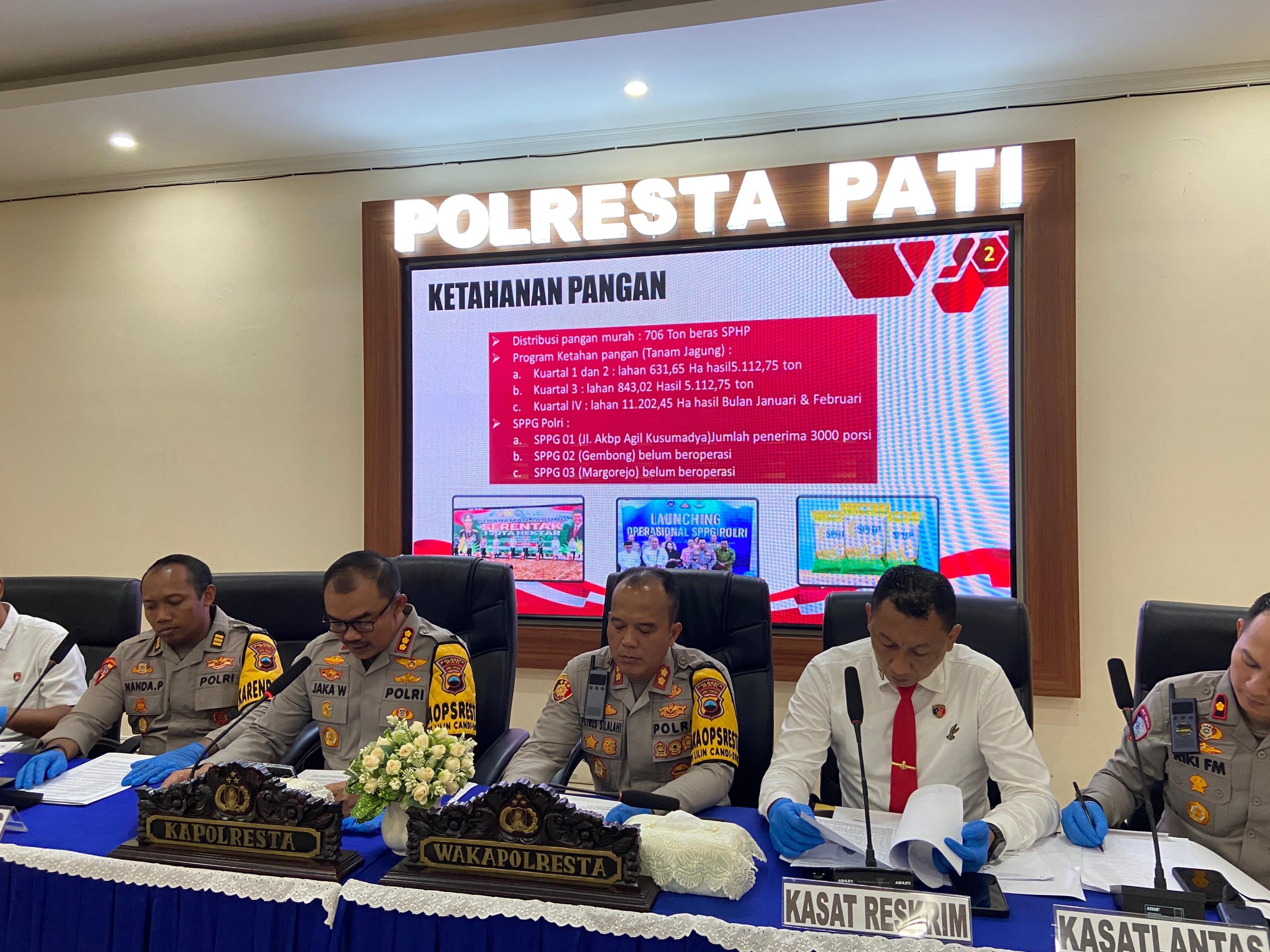 PATI – Kapolresta Pati Kombespol Jaka Wahyudi menyampaikan komitmen Polresta Pati dalam mendukung program pemerintah terkait ketahanan pangan sepanjang tahun 2025. Hal tersebut disampaikan pada Rabu, 31 Desember 2025.