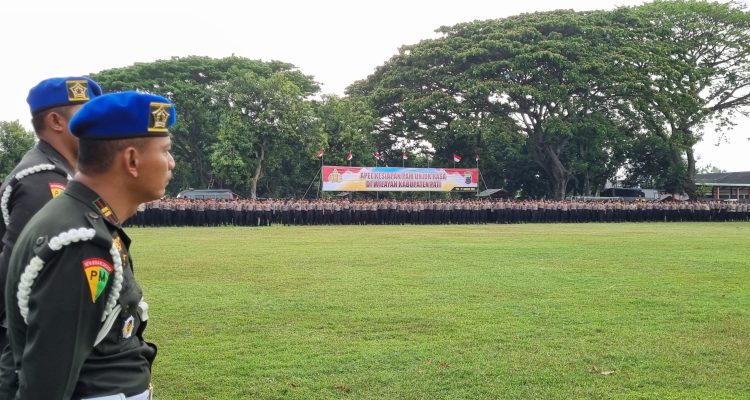 PATI – Polresta Pati melaksanakan apel gelar pasukan gabungan di Lapangan Brimob