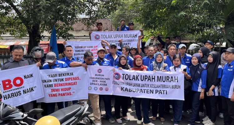 PATI – Sekitar 75 orang dari berbagai serikat pekerja menggeruduk Kantor Dinas